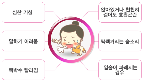 둘째, 호흡곤란 증상입니다. 이는 특히 운동이나 스트레스를 받을 때 심해질 수 있습니다. 호흡곤란은 환자가 자신이 숨을 쉬는 데 어려움을 느끼게 하며, 심한 경우에는 응급 처치가 필요할 수 있습니다.