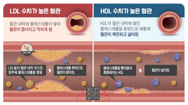 HDL은 체내에서 불필요한 콜레스테롤을 제거하는 역할을 하므로, 좋은 콜레스테롤로 여겨집니다. 저밀도 콜레스테롤과 고밀도 콜레스테롤의 균형을 잘 맞추는 것이 건강한 심혈관 시스템을 유지하는 데 중요합니다.
