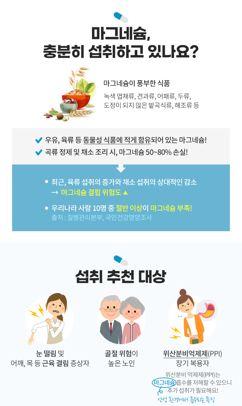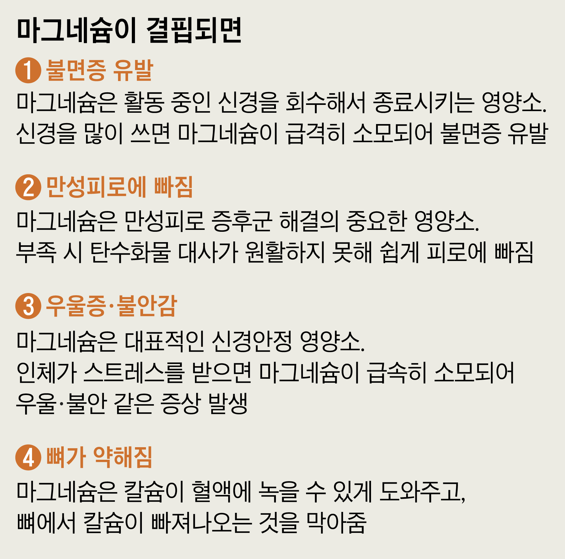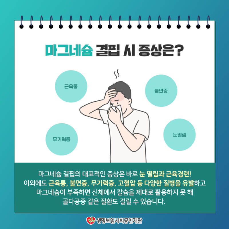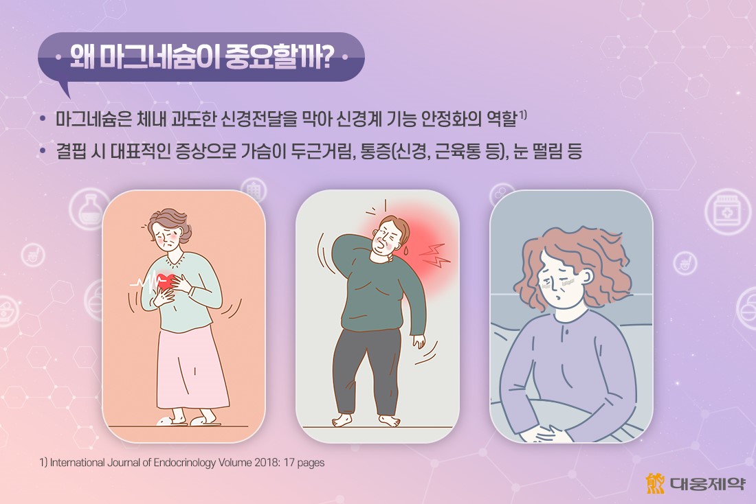 마그네슘이 부족하게 되면 신체의 전반적인 건강이 저하되므로, 예방 차원에서 마그네슘의 적정 섭취가 강조됩니다. 이로 인해 평소부터 마그네슘 섭취를 신경 쓰는 것이 중요합니다.