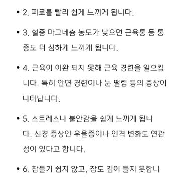 마그네슘 부족은 다양한 증상을 유발할 수 있습니다. 가장 흔한 증상으로는 피 fatigue와 불면증이 있습니다.
