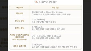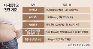특히, 복부 비만이 주된 특징이며, 허리 둘레가 중요한 지표로 사용됩니다. 남성의 경우 90cm 이상, 여성의 경우 80cm 이상의 허리 둘레가 있을 때 대사증후군으로 간주될 수 있습니다.