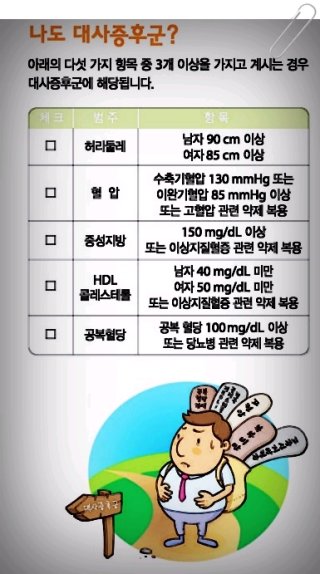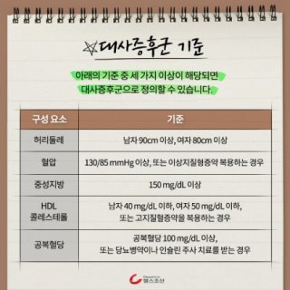 이 외에도 혈당 수치와 지질 수치를 검사하여 대사증후군 여부를 판단합니다.