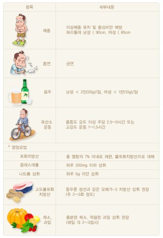 고혈압, 고혈당, 이상지질혈증을 관리하기 위한 약물이 처방될 수 있으며, 이를 통해 전반적인 건강 상태를 향상시킬 수 있습니다.